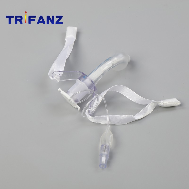 커프가 달린 기관절개관은 목과 기관(기관)에 만든 구멍에 삽입되는 곡선형 관입니다. 일반적으로 사용되는 기관절개관은 플랜지가 달린 외부 캐뉼라(목판), 내부 캐뉼라, 폐쇄기의 세 부분으로 구성됩니다.
